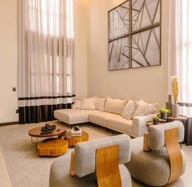 Mais do que apenas confeccionar, controlamos a qualidade e a estética de cada detalhe. Possuo o meu próprio ateliê de cortinas. Isso significa que, além de lhe ajudar a planear o layout e a decoração, garanto que as suas cortinas e blinds sejam confecionadas com medidas exatas, tecidos de alta qualidade e um acabamento impecável, alinhado perfeitamente com o design proposto.