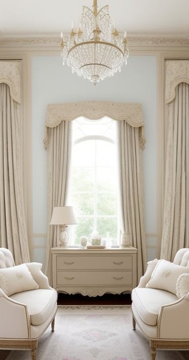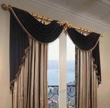 • Harmonia de Estampados: Podem ser utilizadas para introduzir um padrão ou uma cor de destaque no topo da janela, complementando os tecidos das cortinas ou outros têxteis na divisão.
